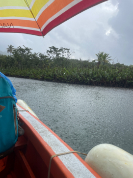 Next stop was Dominica. Picked up a mooring ball in Roseau and got a lift into the town for clearing in by the fellow who managed the mooring balls. Nice little town catering to the cruise ships but did meet up with our Lanzarote friends Sailing Lady Five Eric and Bruno. Lots of vendors selling tourist stuff to the cruisers. 2 nights there and then off to the northern end of the island where we did the Indian River Tour with them and enjoyed a beach barbecue with any amount of rum punch that you want. Only had a couple as someone has to navigate the dinghy back to the boat. Eric and Bruno had come in with us but we left them there to enjoy their evening. Next day on the tour you could tell that Bruno had enjoyed the evening. It rained for our river tour as it does over here. Seems to rain a lot even though it is now into the dry season. But it only rains for a short time and then the sun comes out and dries everything.